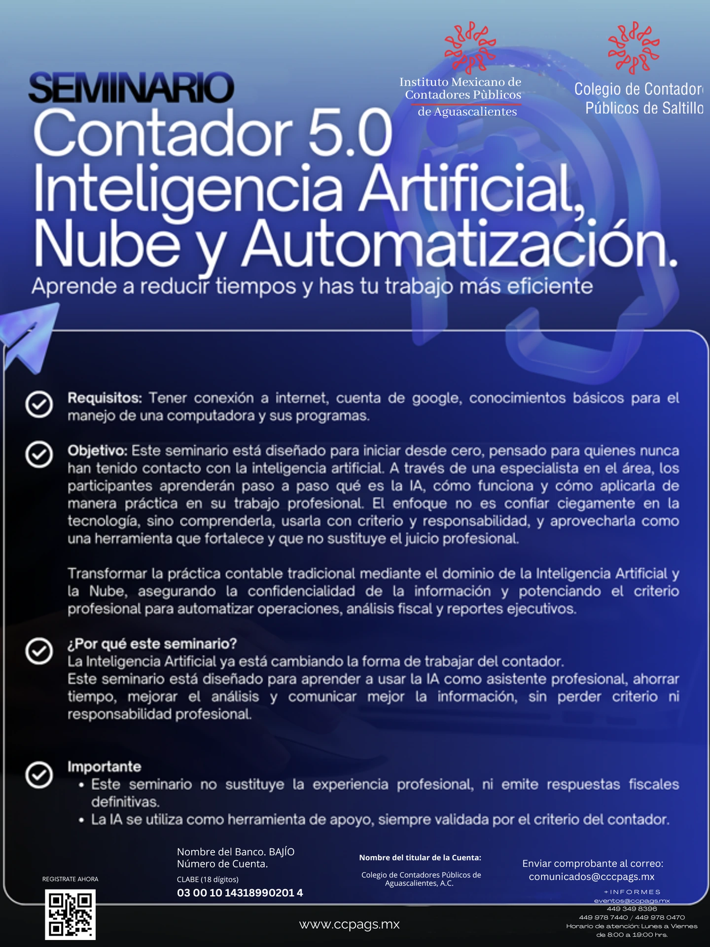 Seminario Contador 5.0 Inteligencia Artificial, Nube y Automatización (en Colaboración con el CCP de Saltillo)